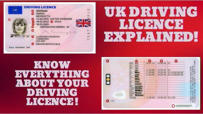 Each section on the front of a UK driving license is numbered, with each number showing the following information: